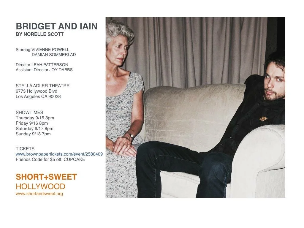Bridget and Iain made its' North American debut in 2016 at the Short+Sweet Festival Hollywood.